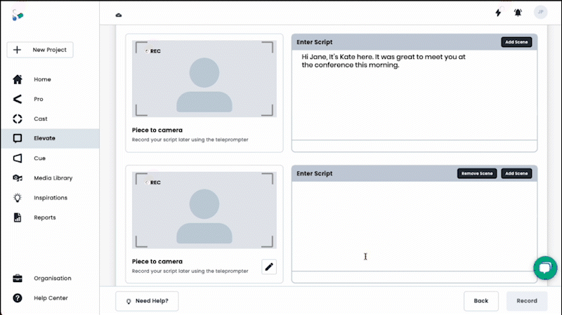 The primary shift in this latest update its predecessor is the move away from mandatory templates. Users can now build their Elevate directly in the Shootsta Platform by entering their scenes directly, choosing whether to show a piece-to-camera or a cutaway for each scene, and immediately start recording using the integrated teleprompter–the Shootsta AI with edit the video together, ready to share in just a couple of minutes.