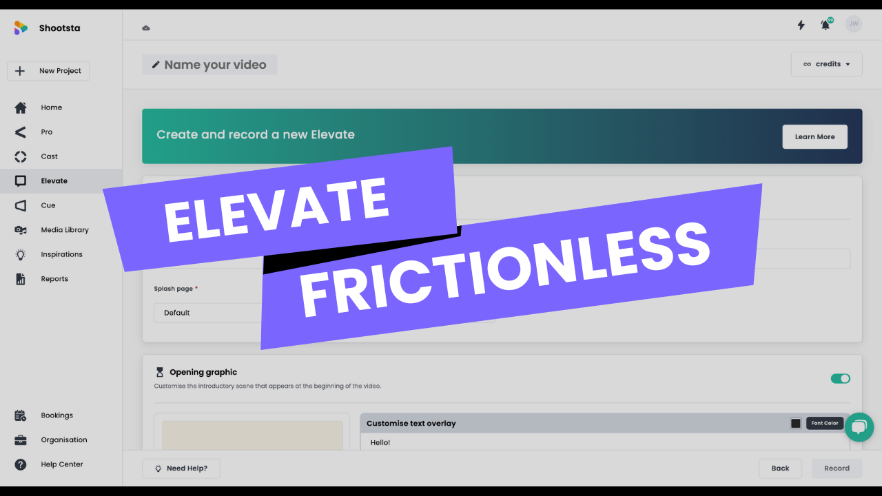 Frictionless Elevates are accessible for current users of Elevate and Shootsta Pro.